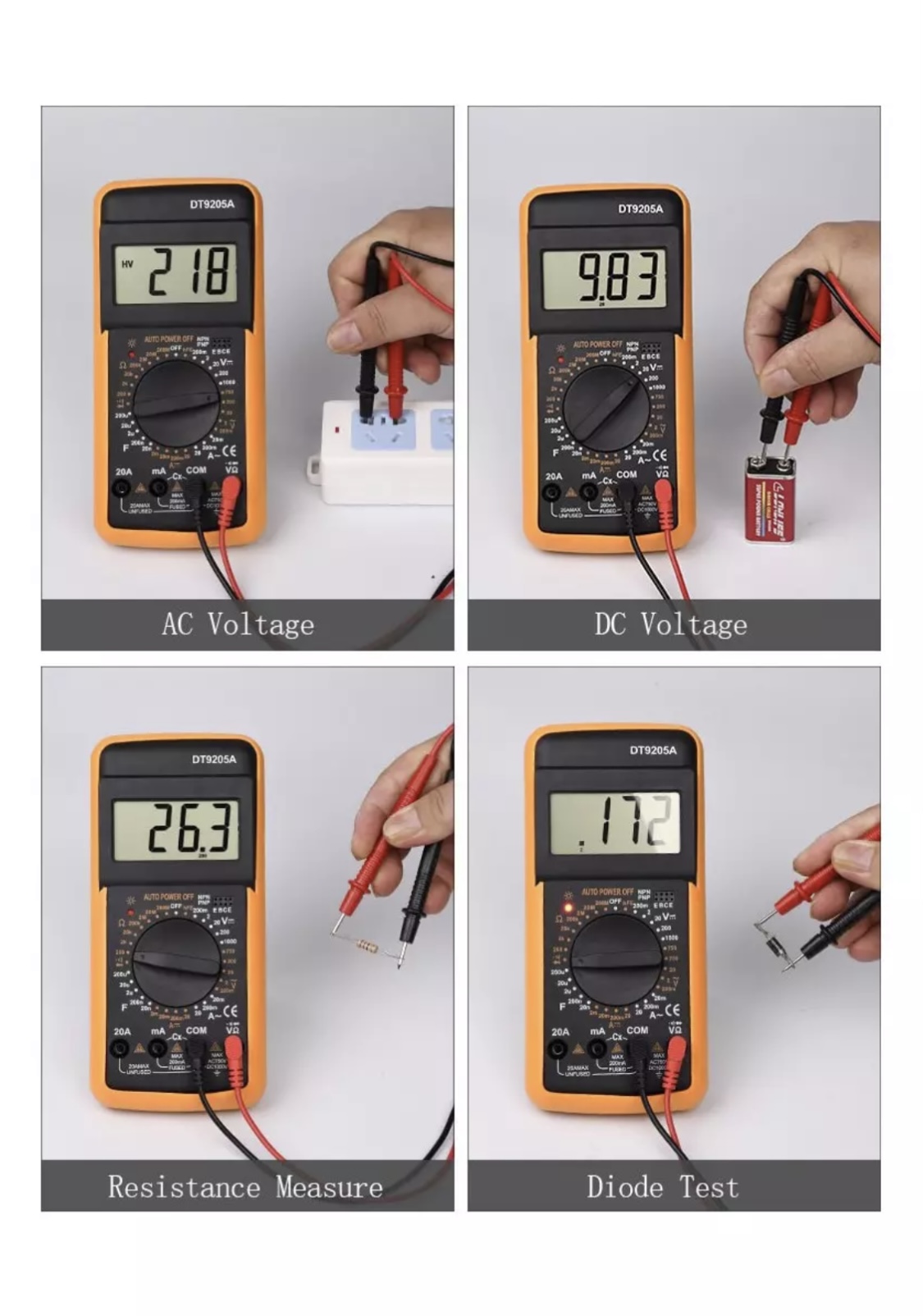 مولتی متر دیجیتال DT9205A با باتری و پراب مخصوص